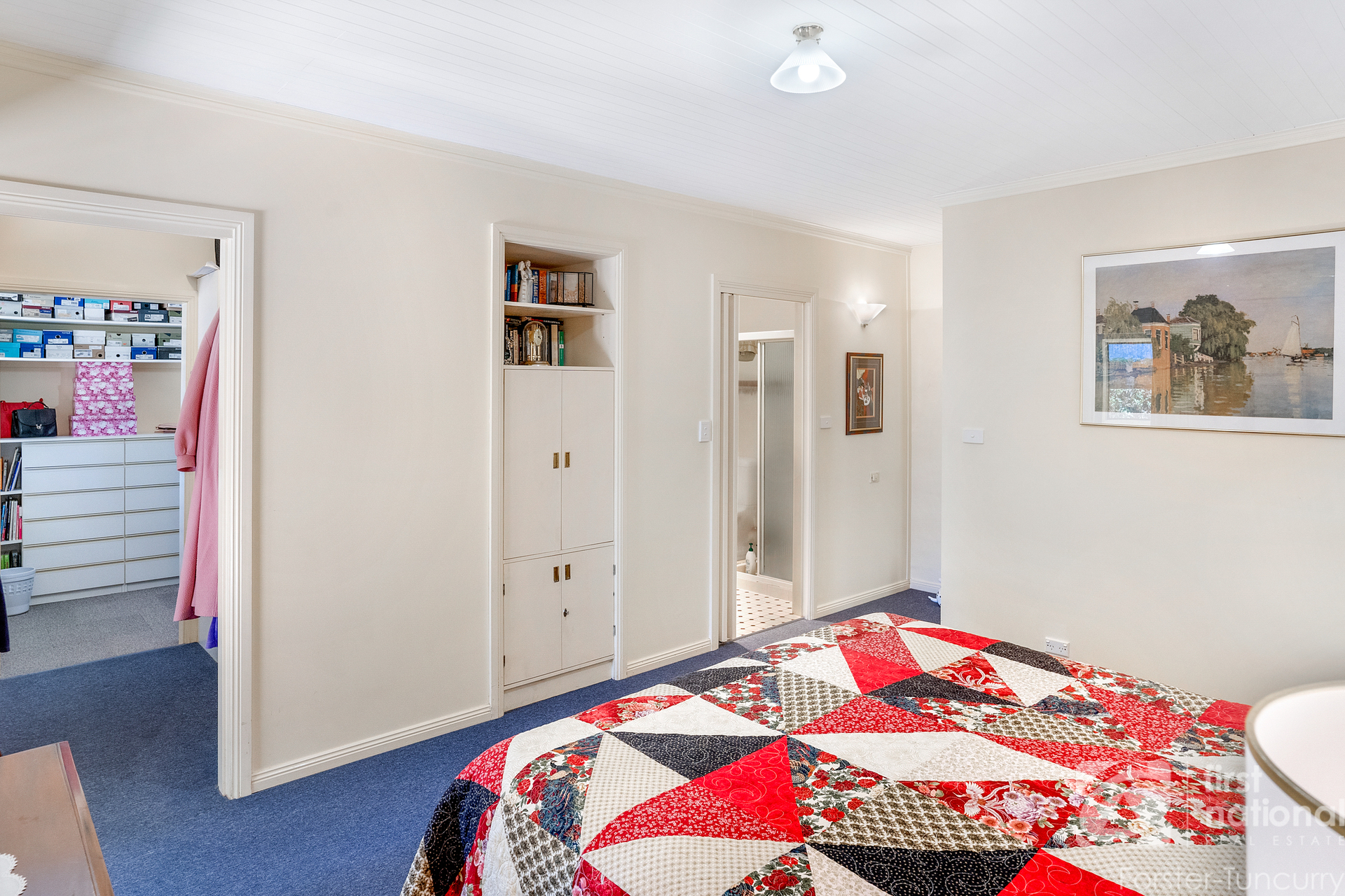 Ascend to the upper level and discover another bedroom, complete with its own ensuite, air conditioning, and ample storage. Additionally, two more rooms grace this level, currently serving as offices with picturesque views of the tree-lined property.